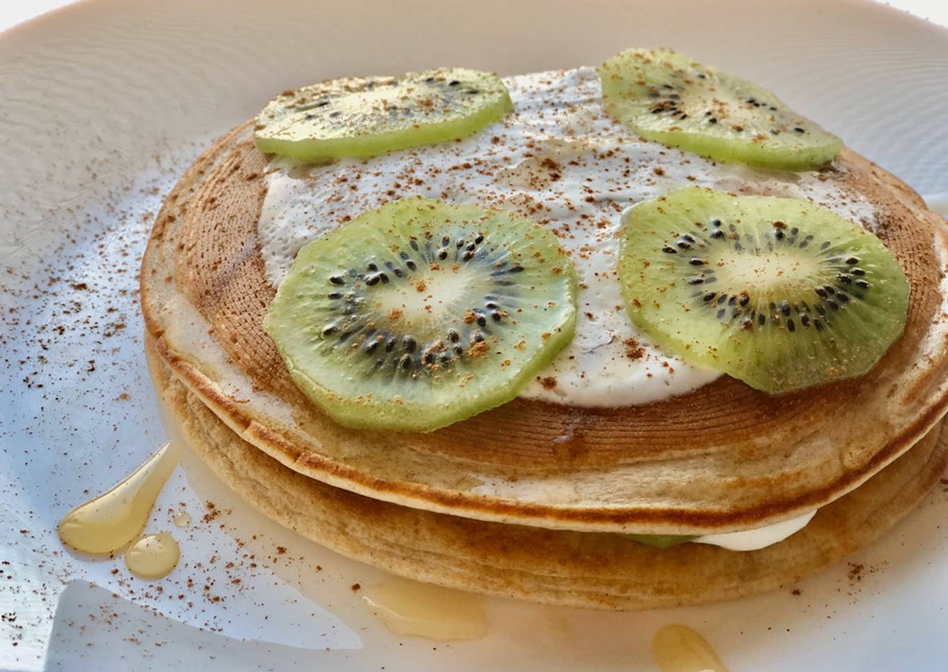 - Agregaro los toppings que más os gusten y a disfrutar. Yo puse queso fresco batido y kiwi con un poco de miel por encima.