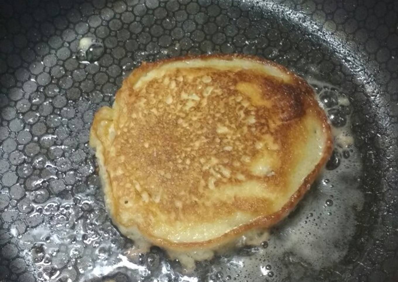 - Añadir un poco de nuestra masa, ten en cuenta que si haces las tortitas pequeñas será más fácil darles la vuelta.